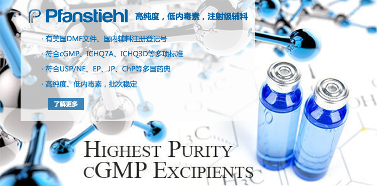 “熱烈祝賀Pfanstiehl的注射級甘氨酸Glycine(G-140)喜獲CDE登記號F20250000403, 這是Pfanstiehl產品獲得的第18個CDE登記號!”甘氨酸在醫藥輔料制劑中應用廣泛,, 可作為緩沖劑,增溶劑,穩定劑等,具有諸多優勢。Pfanstiehl秉承一貫高品質理念,為滿足全球生物制藥行業對于高品質甘氨酸的需求,隆重推出的注射級甘氨酸Glycine (G-140), 具有超高純度,超低內毒素,超低金屬殘留的特點,單獨檢測29種金屬離子,并且新增DNA,RNA,DNA酶,RNA酶和脂肪酶,亞硝酸鹽等多項質量指標的檢測,符合多國藥典規定(USP, EP, BP, JPE, ChP),可用于生物治療性藥物和疫苗的生產。產品信息:· 產品名稱:Glycine, High Purity, Low Endotoxin, Low Metals, USP, EP, BP, JPE, ChP (G-140)· 中文名稱:甘氨酸· 分子式:C2H5NO2· 分子量:75.07 g / mol· CAS號:56-40-6· 產品貨號:G-140產品特點: · 超高純度,超低內毒素,超低微生物含量,超低金屬雜質殘留· 質量指標新增DNA,RNA,DNA酶,RNA酶,脂肪酶和亞硝酸鹽檢測· 符合多國藥典:USP, EP, BP, JPE, ChP· 符合ICH Q3D標準· 符合GMP標準· 已獲DMF和CDE登記號 產品應用:· 緩沖劑· 穩定劑· 增溶劑如果您對Pfanstiehl注射級別Glycine G-140感興趣,歡迎聯系Pfanstiehl 中國區代理商北京西美杰科技有限公司獲得如下詳細的產品概況說明文件和測試樣品。Pfanstiehl Inc.最新產品系列如下,歡迎聯系北京西美杰科技有限公司獲取100g裝免費樣品。北京西美杰科技有限公司為Pfanstiehl中國代理,為客戶提供完善的技術支持與售后服務。歡迎撥打西美杰客服電話400-050-4006或者登陸網站www_xmjsci_com.wowanking.com了解更多信息。 更多>西美杰介紹
